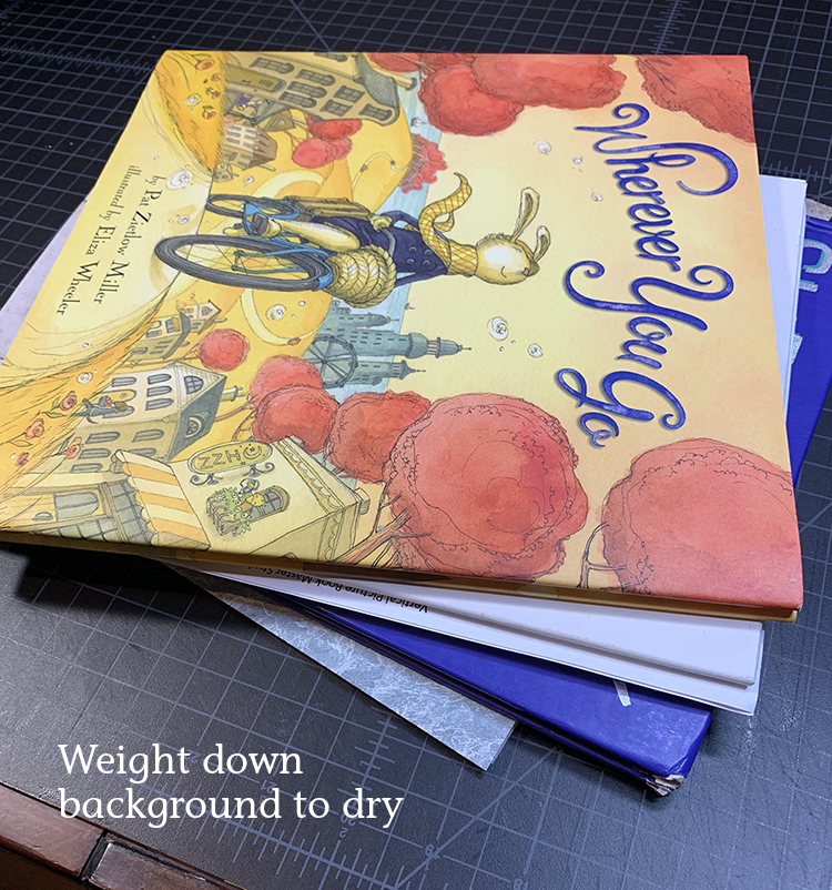 NOTE: weigh down the foam core/background paper while it dries so that it stays flat.
