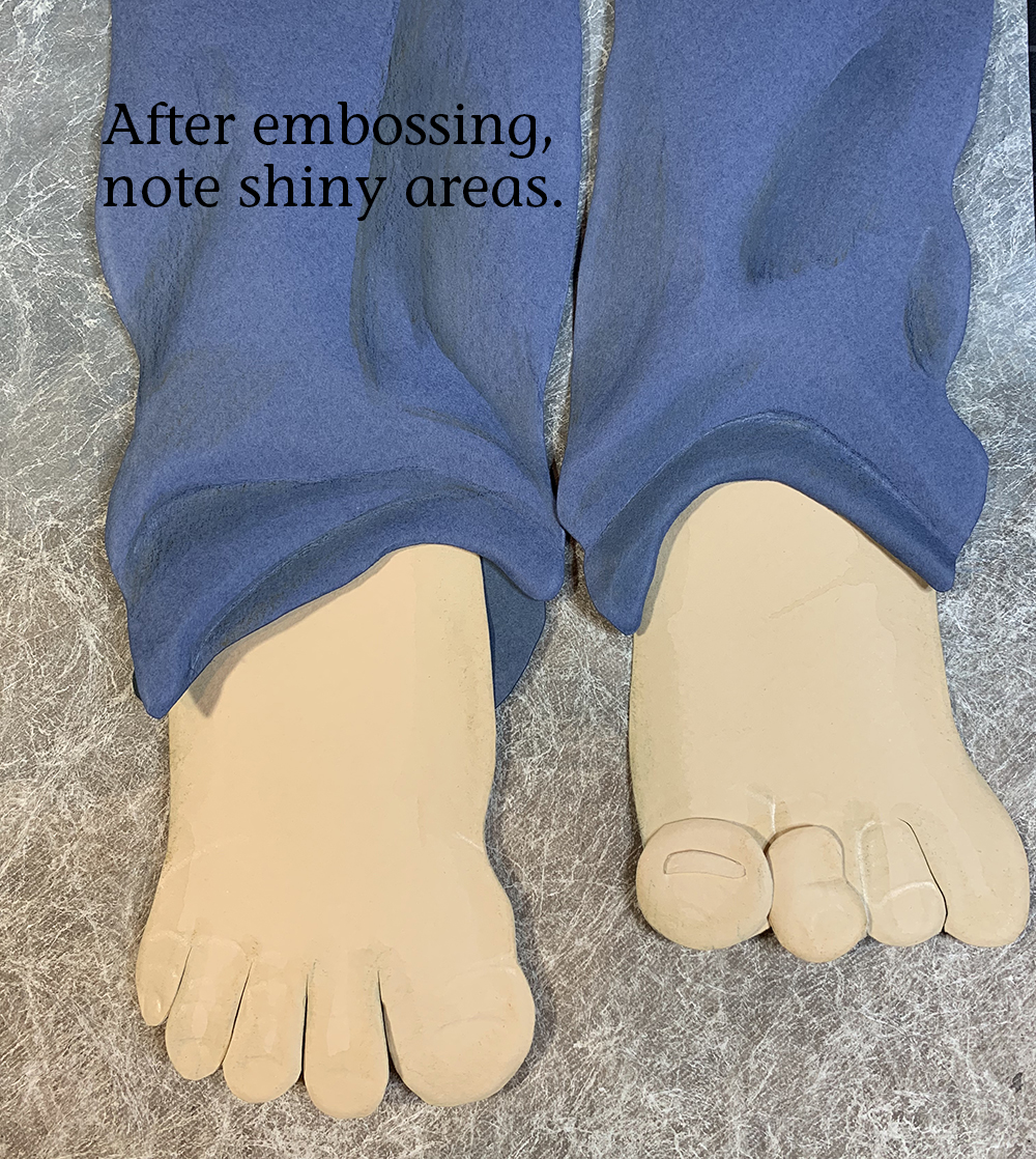 Note: There is a limit to how far the paper can be embossed. There was a max depth on the ankle bone in the video below that can be achieved. I think that is why noses are particularly hard in paper-sculpture portraiture, and front-on noses almost impossible. (This could be a post in itself).