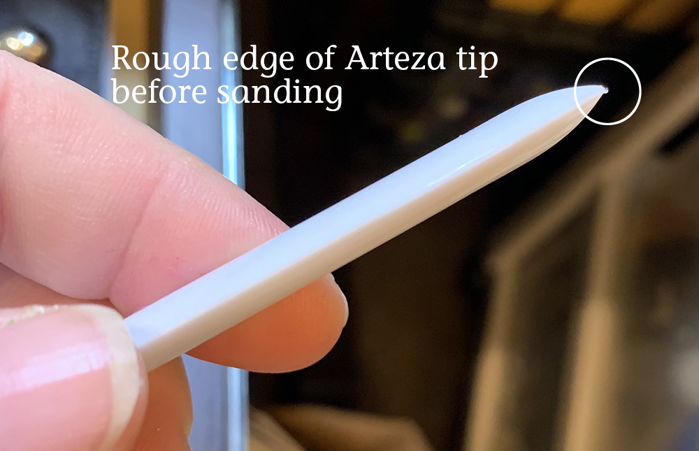 The Arteza plastic bone folders are not a bad option, and they are inexpensive. However, they are a little rough. I went through and sanded all the rough edges first, because you don’t want it scratching the paper.