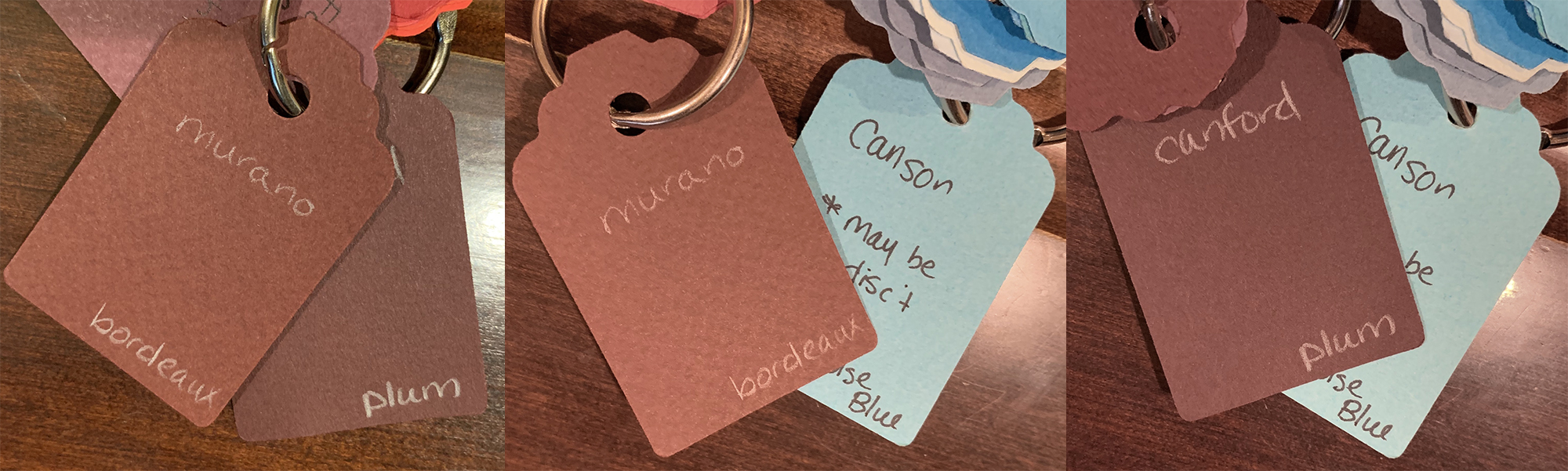 I was happy to find that I could order a physical copy of a swatch book, which allowed me to see which colors would extend my existing range. Unfortunately, I can only find them sold online, and the smallest multiple was quantities of 5. You want the 135 gsm paper weight. But, because I had a printed physical swatch book, I feel confident that they are not duplicate colors, or are colors I know I’ve wished I had.