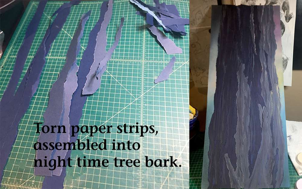 Tearing the paper to create a jaggedy edge can also add visual interest. This is appropriate for natural items such as tree bark.