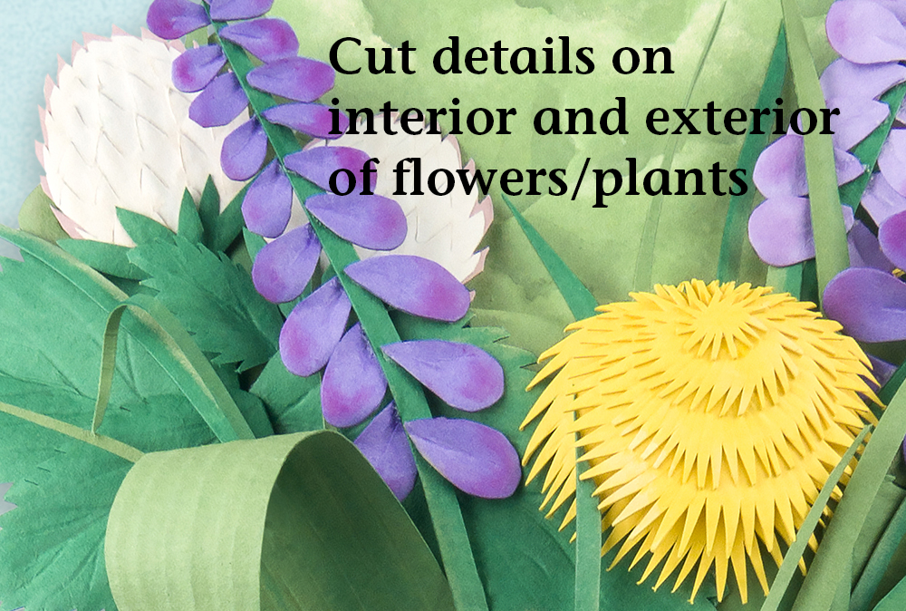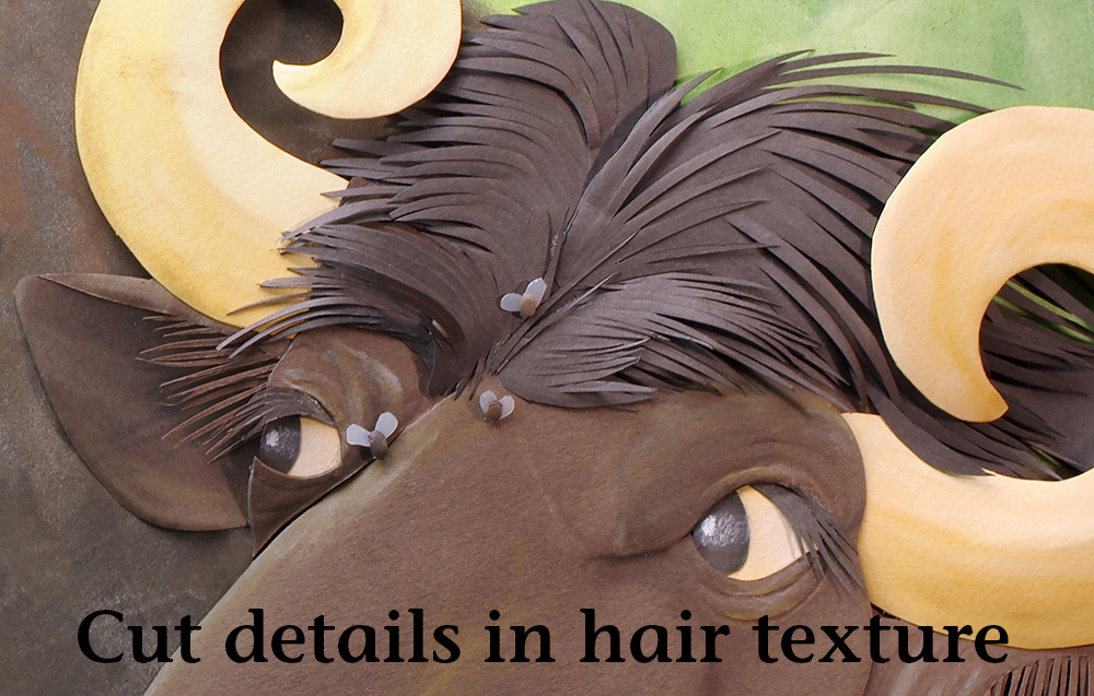You can cut textures into the side/edge of the paper piece. This is a great technique for hair, fur, feathers, plants, etc.