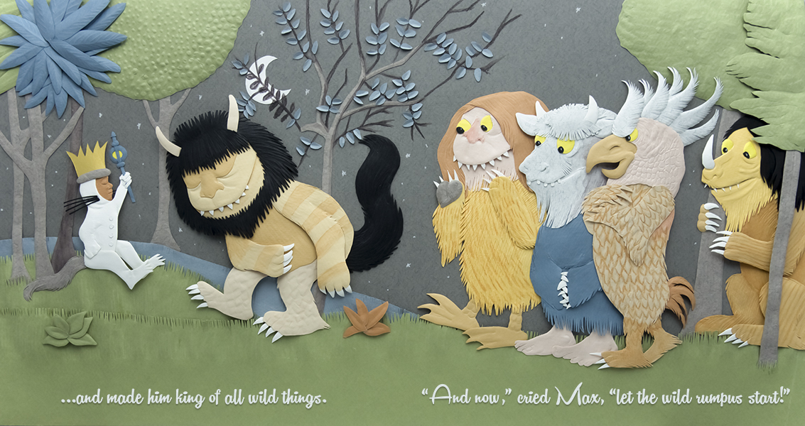 Often, you will employ a combination of these techniques. For example, the monster fur on “Where the Wild Things” has been painted, cut, and embossed.
