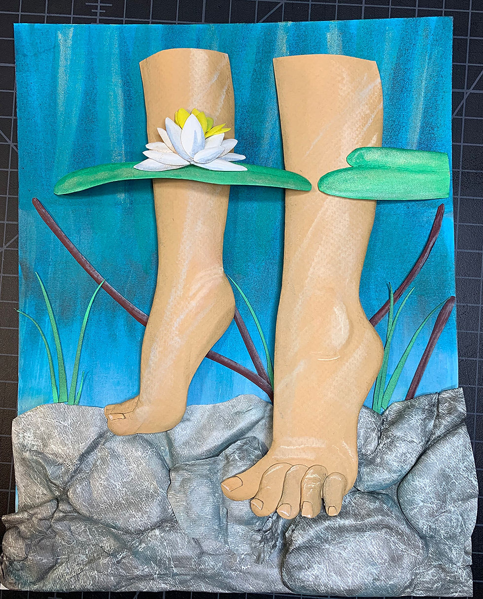 One challenge with paper sculpture is playing with hard/soft edges in your work to help direct the eye. Something I’ve tried is creating the background in pastel, achieving an effect analogous to “bokeh” in photography (sharp foreground/blurry background).