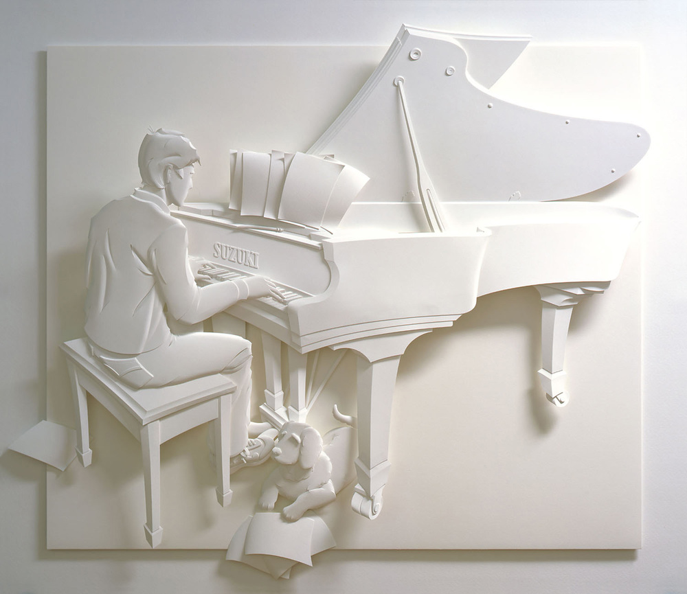 Eventually I found more the more realistic, bas-relief paper sculpture I was looking for. Two excellent artists I found were Jeff Nishinaka and Calvin Nicholls (although there are many others).
